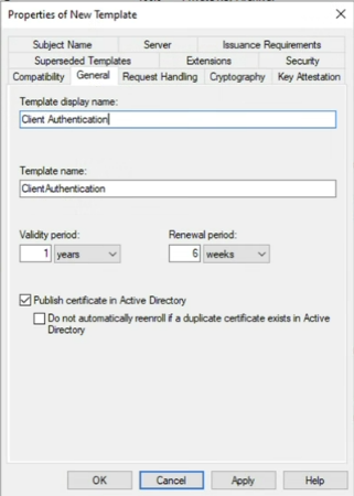 Create an authentication template for generating the client keystore. For example, you can copy an existing template and configure it as explained below.