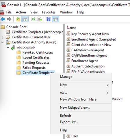 10. Right-click Certificate Templates and select New >Certificate Template to Issue.