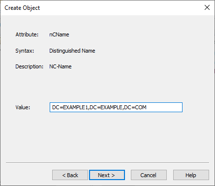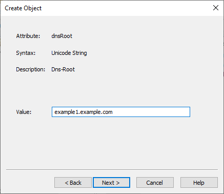 - In the Value field, enter the distinguished name of the cross-forest domain.