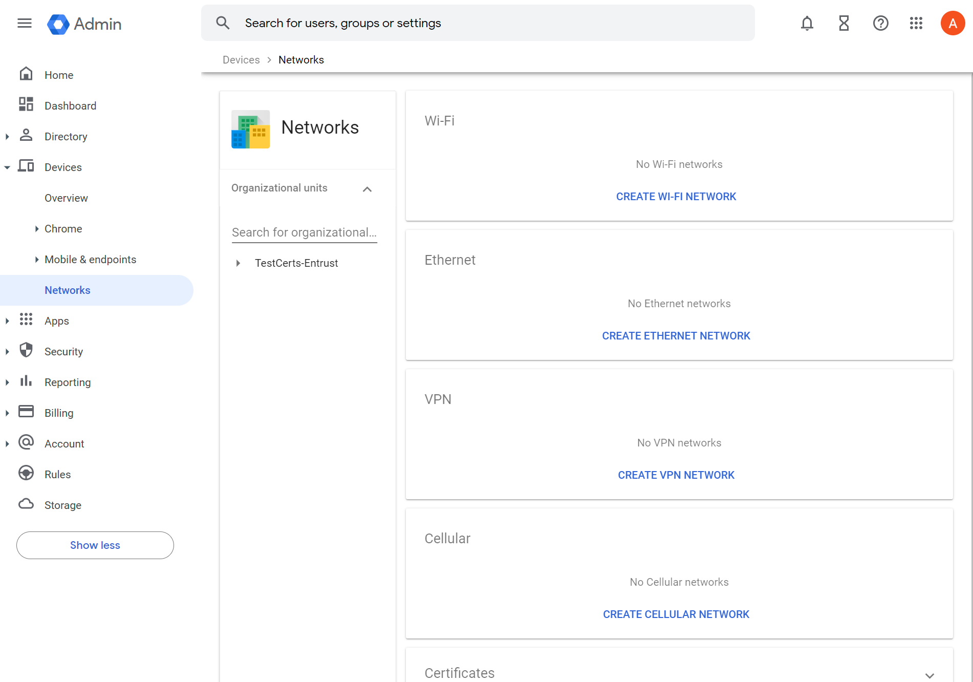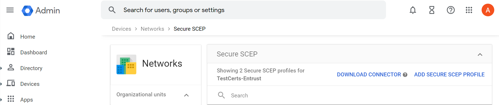 SCEP enrollment for ChromeOS is controlled using Google Admin, a Web-based interface for managing users and groups for an organization.