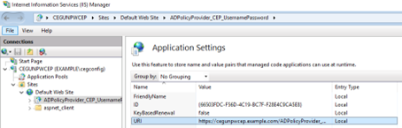 - Select the name of the Certificate Enrollment Policy Web Service application.