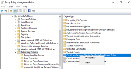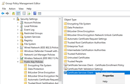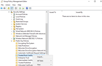 - In the tree view, expand Computer Configuration > Policies > Windows Settings > Security Settings > Public Key Policies.
