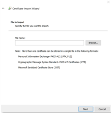The Certificate Import Wizard dialog box appears. - Click Next.