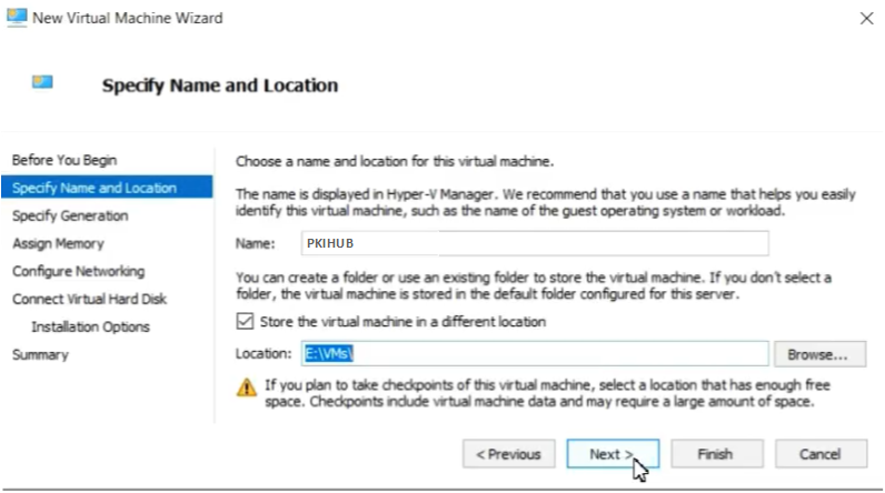 Install the Cryptographic Security Platform ISO image as a new Hyper-V virtual machine.