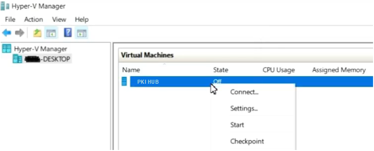 To start a Cryptographic Security Platform virtual machine on Hyper-V
