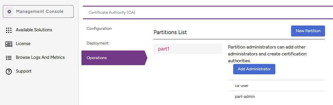 Once onboarded, administrators can be added to an existing partition.