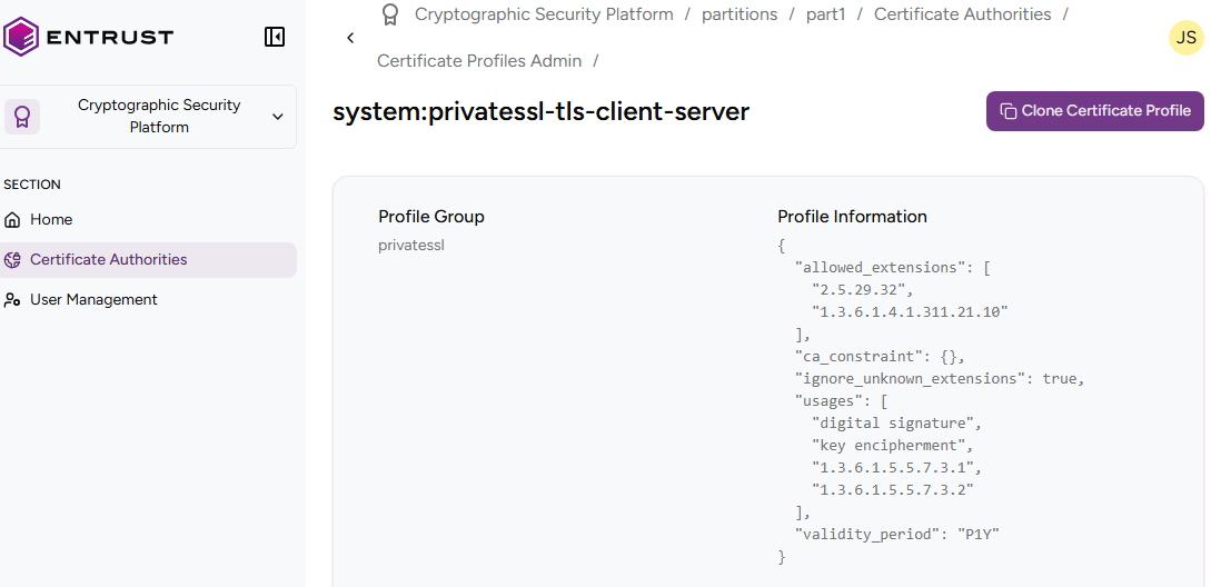Check the certificate profile details described in https://docs.pkiaas.entrust.com/profiles/browse/fields