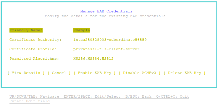 4. Select Manage EAB credentials, and then press Enter.