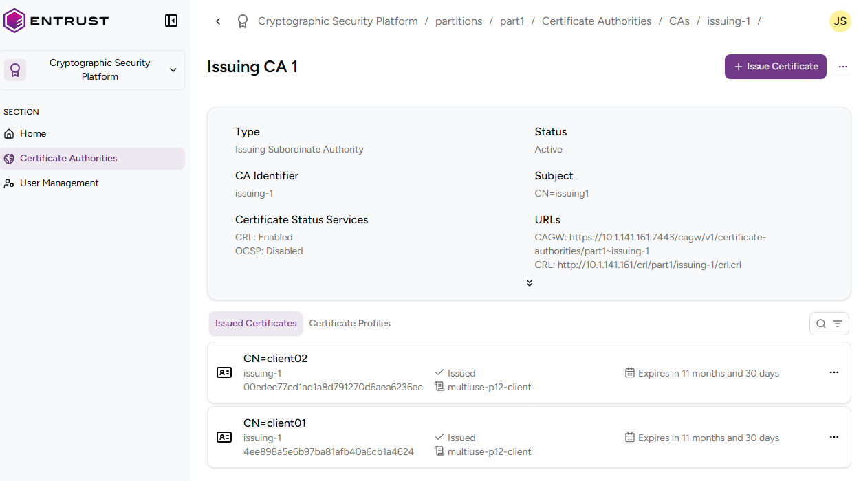 - In the Issued Certificates tab, click any of the listed certificates.