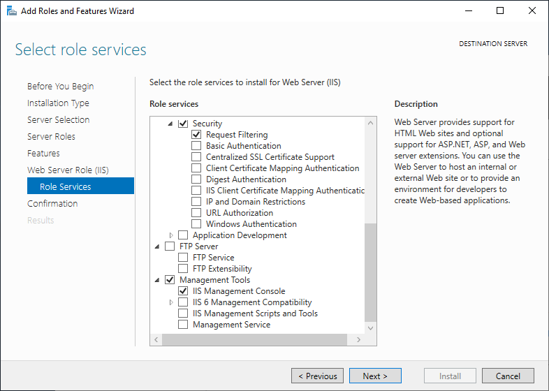 15. Under Management Tools, verify that IIS Management Console is selected.