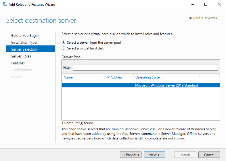 7. Click Select a server from the server pool. By default, this option should already be selected.
