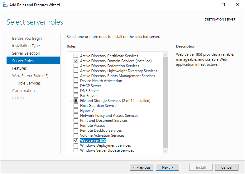 11. A dialog box may appear, informing you that some features are required for Microsoft IIS. Click Add Features to add these required features and close the dialog box.