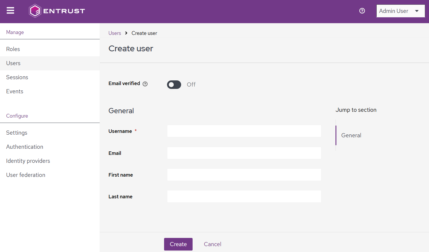 - Log in to the Management Console as a user with a role granting user management permissions – for example, the initial