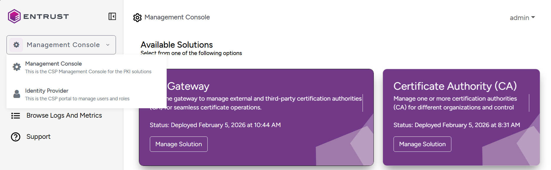 <machine>is the IP address or domain name of the machine hosting Cryptographic Security Platform.This release changes the URL port to 8443. Update your bookmarks accordingly.