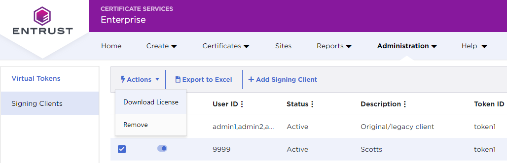 Download your Signing Automation License from the Entrust Certificate Services web portal.