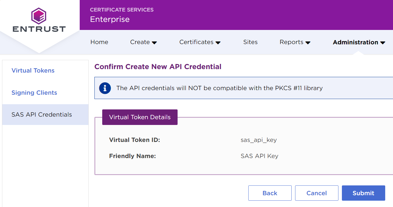 - In the sidebar, click on SAS API Credentials to list the generated SAS API credentials.