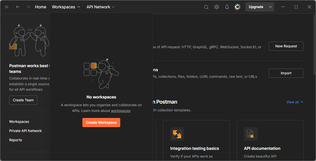 - Deploy the Workspaces menu and click Create Workspace.
