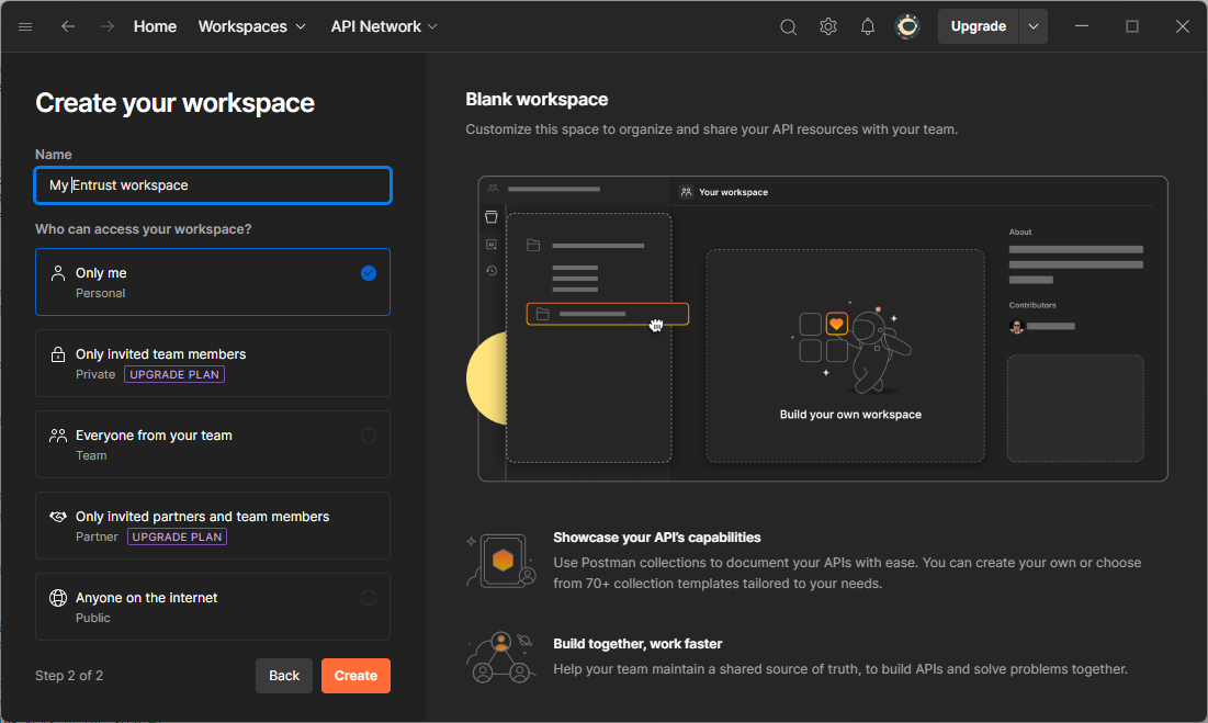 - Select Blank workspace and click Next.